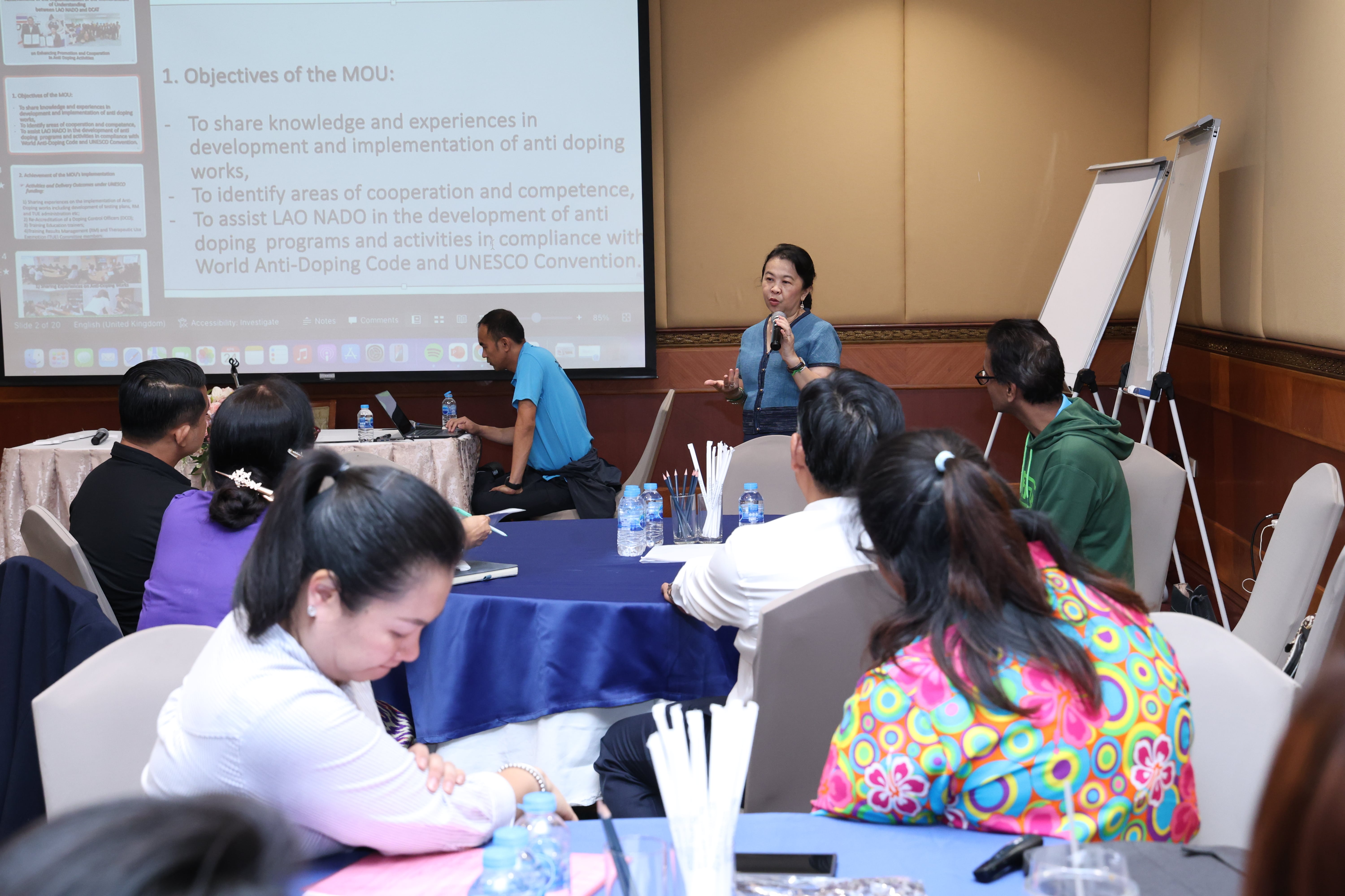 On the 24th of April, SEARADO had a side meeting in Bangkok, Thailand with the Lao National Anti-Doping Organisation (LAO-NADO) and Myanmar Anti-Doping Organisation (MADO), both of whom have signed a Memorandum Of Understanding (MOU) with the Doping Control Agency of Thailand (DCAT) for collaboration and support. Dr Silinthone Sacklokham, Director of Lao-NADO and Prof Thanthan Htay, President of MADO presented on the achievements and strides made with the support of DCAT and SEARADO.